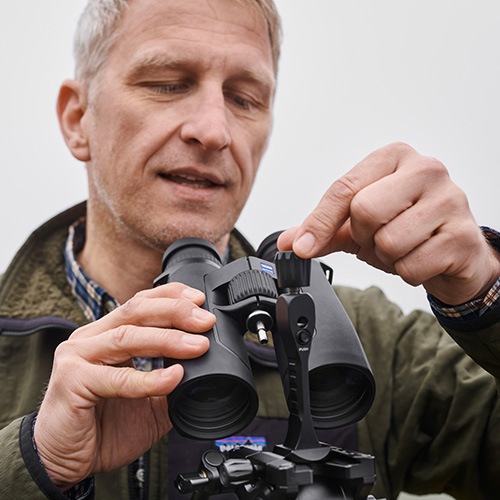 取り付け可能なZEISS双眼鏡の機種でしたら、三脚取付部に双眼鏡取付ネジを取り付けて使用することが可能。