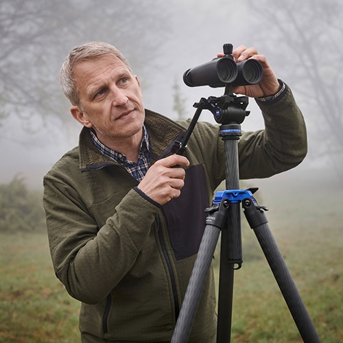 三脚に取付けてブレを制御。長時間観測や高倍率双眼鏡で視界を安定させる必須アイテム。