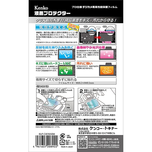 【即配】 デジカメ 液晶プロテクター キヤノン IXY650m/IXY650用 : KLP-CIXY650M ケンコートキナー KENKO TOKINA【ネコポス便送料無料】