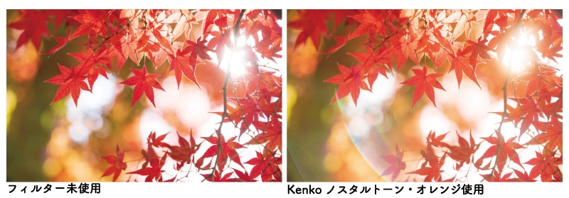 ノスタルトーン・オレンジは光をほんのりと拡散する効果とオレンジ色の暖かい色味でノスタルジックな夕暮れの雰囲気にします。