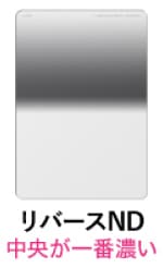 フィルターの中央が最も濃くて、上に向かって段々薄くなるハーフNDフィルターです。水平線や地平線から上る朝日や夕日の撮影で、太陽付近の露出オーバーを防ぎ、空の美しいグラデーションを表現します