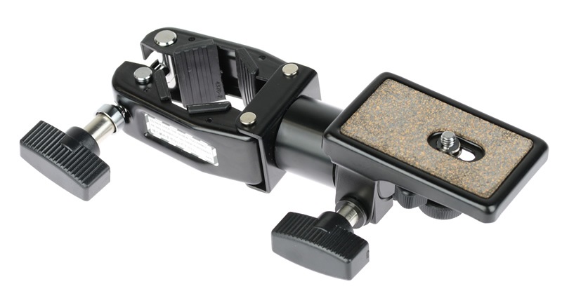 三脚の脚パイプなどの「パイプ」にクランプして、カメラを取り付けるアクセサリー