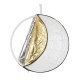 オールインワンレフは5種類のレフ板を使い分けられる「全部入り」丸型レフ板。丸枠フレームに、ホワイト・シルバー・ゴールド・サンライトの4面構造カバーをかぶせることで、それぞれの色のレフ板として使用することができます。両面ホワイトのディフューザーも付属しており、4+1の5種類のレフ板として使い分けが可能。