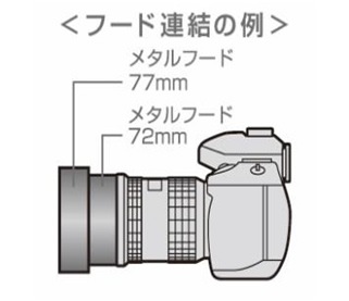 フィルター溝にねじ込む構造で、レンズにしっかりと固定。取り外しも簡単に行えます。■フードを連結することで望遠レンズにも対応