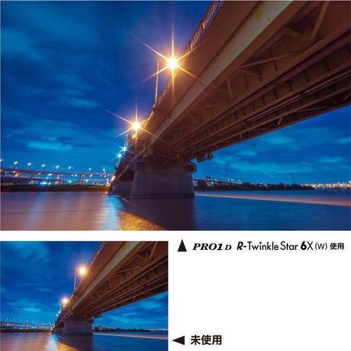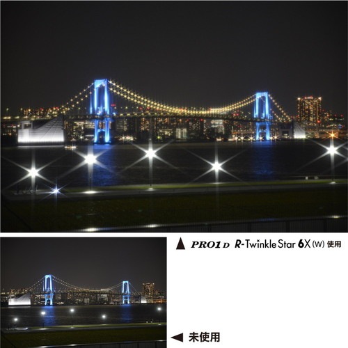 「PRO1D R-トゥインクル・スター6X(W)」は夜景やイルミネーションなどの強い点光源をほどよい長さの6本線クロスでキラキラ輝かせます。