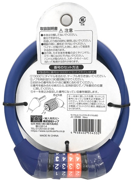 【即配】マイセットコンパクトダイヤル60 NAVY ネイビー TOP トップ 自転車用ワイヤー錠【ネコポス便送料無料】