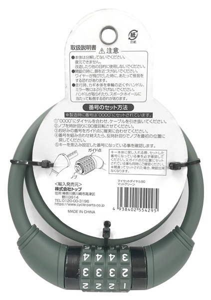 【即配】マイセットダイヤル90 マットグリーン TOP トップ 自転車用ワイヤー錠【ネコポス便送料無料】