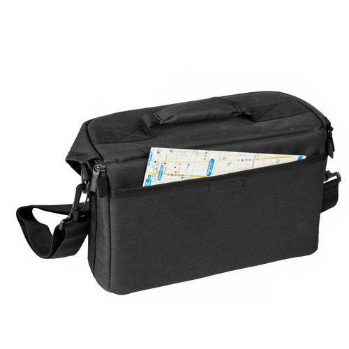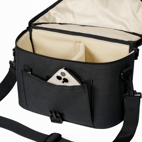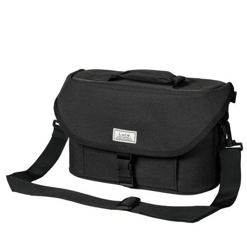 シンプルなデザインの、ベーシックなショルダータイプのカメラバッグです。バッグの開口部はフラップ式で、ワンタッチで閉じられるバックルを装備。