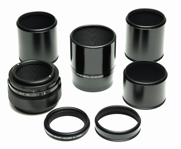 | 付属品 | ミニボーグ54対物レンズ【2554】、M57ヘリコイドLIII【7861】、M57/60延長筒L【7604】×2個、M57/60延長筒M【7603】、M57/60延長筒SS【7601】、カメラマウントホルダーM【7000】、各種説明書、安全上の注意 |