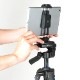高さ調整機構を使って幅を拡げれば、タブレットの装着が可能。お手持ちの三脚に取り付けできます。 (三脚は別売りです)