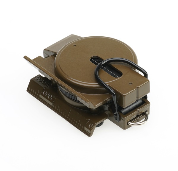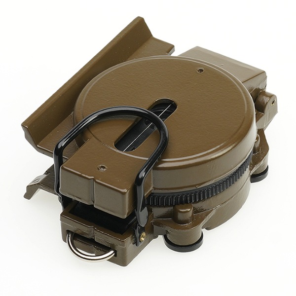 文字盤は軍用のミル目盛と、通常の度数目盛の2種類を表示。本体には丈夫なアルミ合金を採用した軽量タイプです。