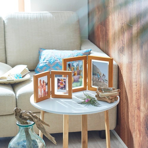 ナチュラルな質感がオシャレな2面タイプのフォトフレーム。写真を透明板に挟むことによって、まるで宙に浮いたように飾ることが出来ます。