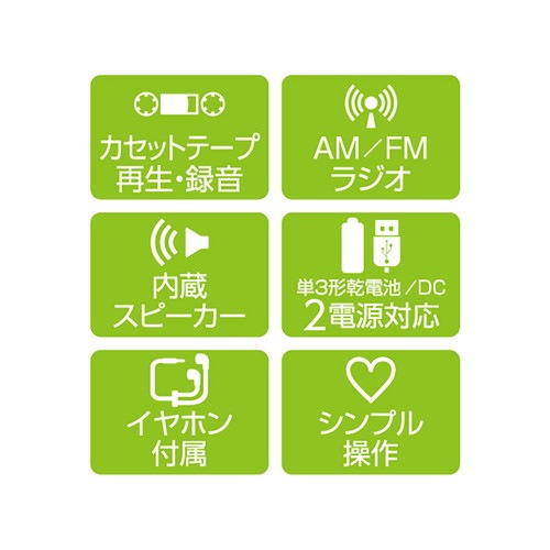 ポータブルタイプのAM / FM ラジオカセットレコーダーです。■AM/FMラジオをカセットテープへ録音できます。