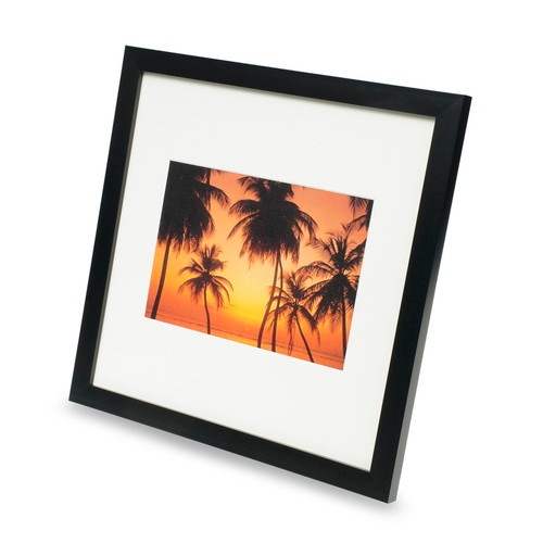 落ち着きのあるフラットなスクエア型フレームと、ワイド幅のVカット台紙が、写真をおしゃれで贅沢な印象に飾り立てます。どんなインテリアにも合わせやすいスタイリッシュでプレーンなデザインは、プレゼントにもおすすめです。