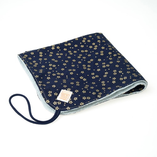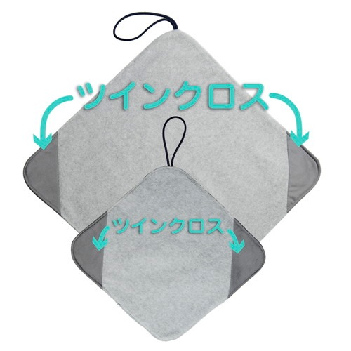 裏面の角2か所にある三角の生地はクリーニングクロスとして、液晶画面のお手入れなどにもお使いいただけます。