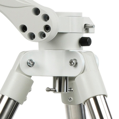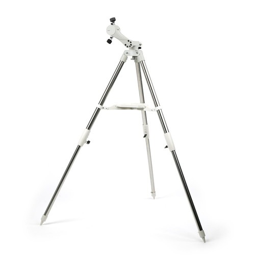 三脚は安定感のある伸縮式のステンレス製三脚を採用。お好みの高さに変更する事ができますので、楽な姿勢で観測できます。三脚ステーには標準でアクセサリートレイが付属していますので、接眼レンズなどを置くことができ夜間の観察時などにも便利です。