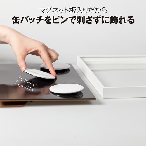 マグネット板入りなので、缶バッチを刺さずに飾れる!好きな位置にレイアウト可能。