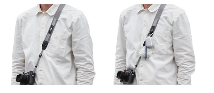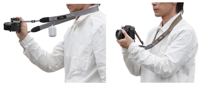 あえて左右非対称にしたデザインは蔵CURAからのカメラストラップの新しい提案です。