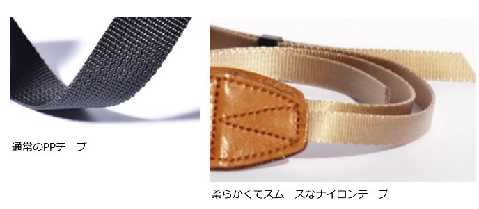 カメラに接続するコネクトテープも幅違いの高品質ナイロンテープをセレクト。するりとした優しい手触りのナイロンテープは、お肌や衣類に対して摩擦を軽減します。
