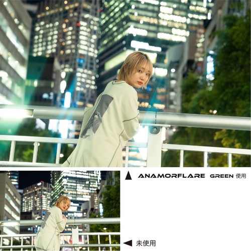 アナモルフィックレンズのフレアは通常ブルーですが、アナモフレアはブルー、グリーン、イエロー、レッド、クリア、レインボーの6種類をラインナップ。