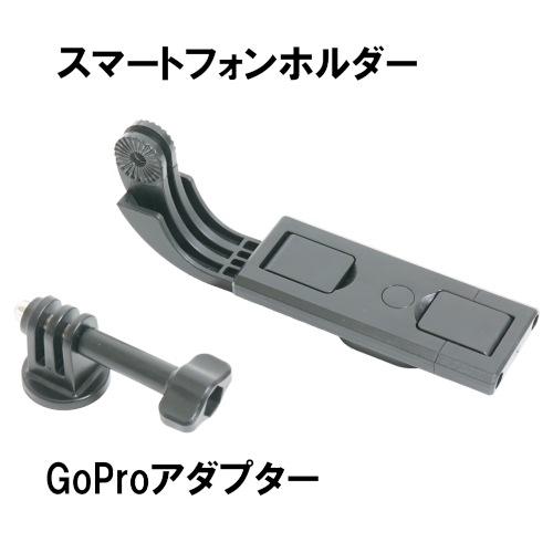 高い伸縮比を実現するために、回転ロック方式を採用した6段式ポール。パイプそのものを持って回転させることで、一気に伸縮固定ができます。360°カメラを取り付けることで、自撮り棒として使用可能。さらに、GoProアダプター、スマートフォンホルダーも付属。