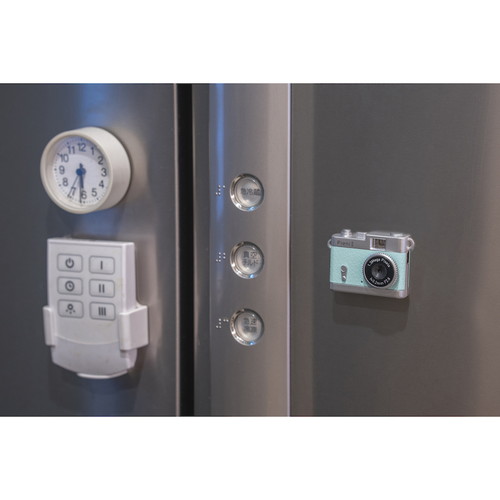 カメラ背面にマグネットを内蔵。冷蔵庫など磁石がくっつくところにピタッと固定できて動画撮影時に便利です。