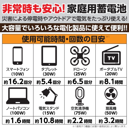 ■いろいろな電化製品の充電に使える大容量ポータブル■キャンプや災害時の電源供給に最適な製品です。