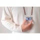 ネックストラップ付きでアクセサリー感覚で持ち歩けます。