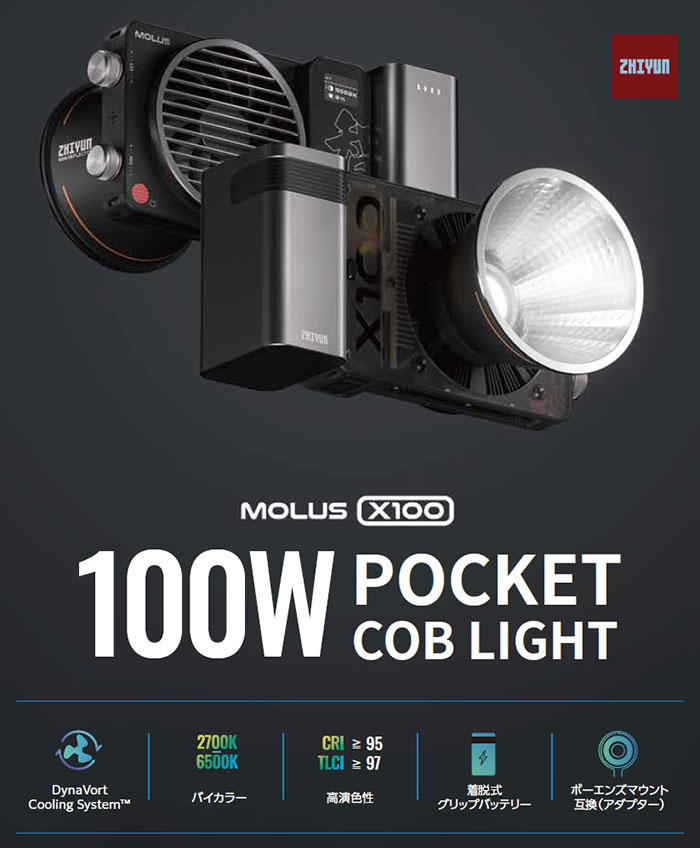 ジンバル・撮影用LEDライティング機材の世界的メーカーであるZHIYUN(Guilin Zhishen Information Technology Co., Ltd.)より、プロフェッショナルな映像制作を支援する最新のLED照明機器「MOLUS X100」を発売します。