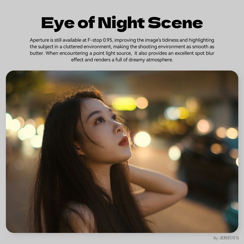 夜の暗い環境の中でも、周囲の光をF0.95のレンズの明るさで、より多くの光を取り込むことができます。