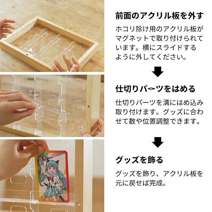仕切りの位置が調節できていろいろな推し活グッズが収納できる、マルチグッズ用のディスプレイフレーム。 アレンジ無限大♪楽しさ未知数♪あなただけのディスプレイを楽しめます!缶バッジ/トレカ/CD/アクスタ/フォトカ/缶バッジ/ブロマイド/ミニ色紙/クリアファイル/銀テープetc...