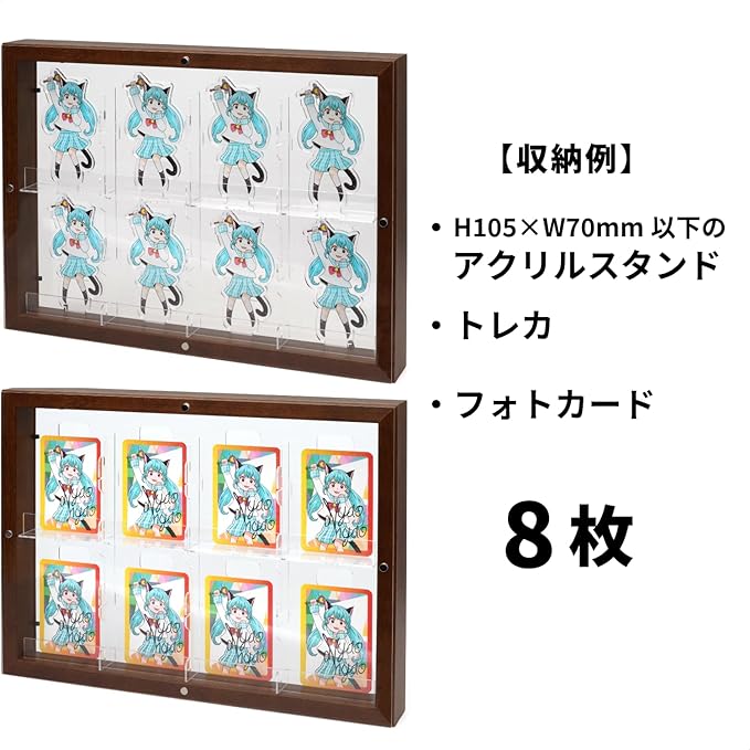 表面カバー、仕切板だけでなく背板もアクリル製となっており、トレカなどの裏面を見たいときもそのまま確認することができます。