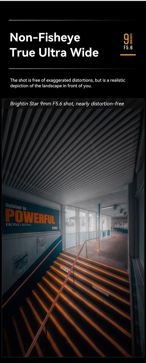 魚眼ではない、9mmの超広角レンズで132°の画角を実現した「Brightin Star 9mm F5.6」。