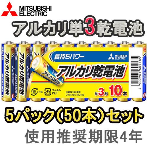 【10%OFFクーポン対象】【★お得な5パックセット!(50本)】【即配】 アルカリ 単3電池x10本 LR6N/10S MITSUBISHI 三菱【ネコポス便送料無料】使用推奨期限4年 単三電池 乾電池