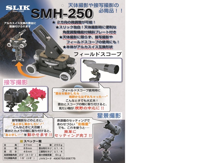 【会員限定セール】【即配】 2軸微動雲台 SMH-250 SLIK スリック 【送料無料】【数量限定】