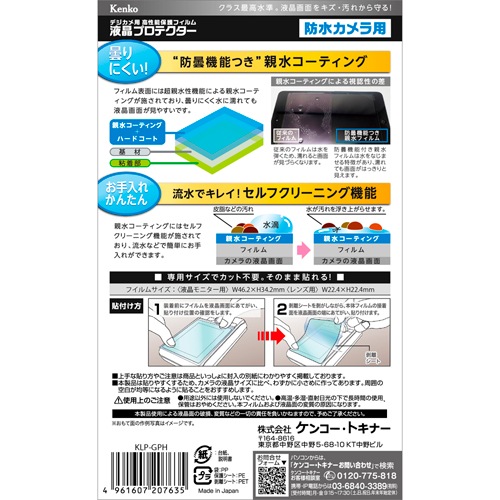 曇りにくく、水に濡れても液晶画面が見やすい親水コーティング採用の防水カメラ用液晶プロテクター