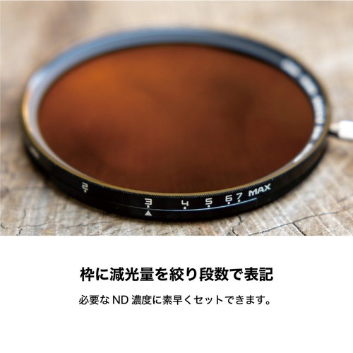 一眼動画撮影で露出コントロールをするのに欠かせないフィルターで、静止画でのスローシャッター撮影にもお使いいただけます。