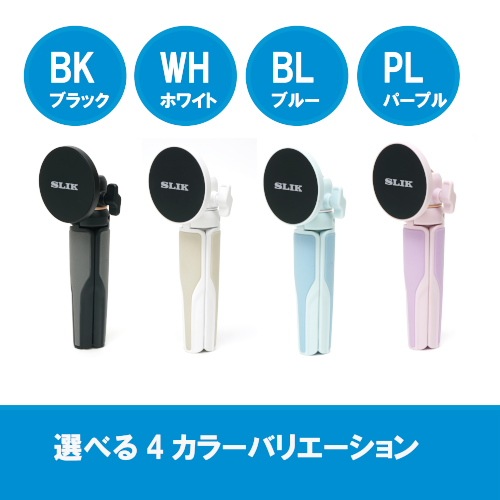 BK(ブラック)、WH(ホワイト)、BL(ブルー)、PL(パープル)の4色を用意。スマホやケースなどとのカラーコーディネートを楽しめます。
