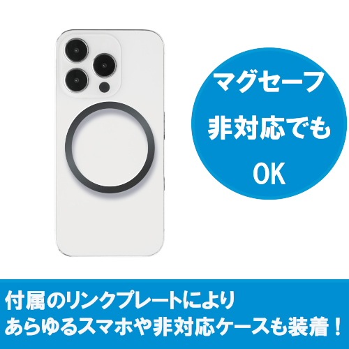 また、付属のリングプレートにより、マグセーフ未対応のスマホやケースでも装着が可能となります。