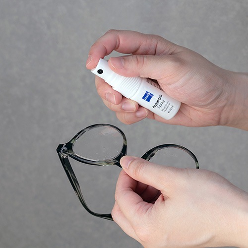 ZEISS 曇り止めの効果を最大限引き出すには、まずZEISS レンズワイプまたはZEISS レンズスプレーを使ってレンズの埃や汚れを取り除きます。
