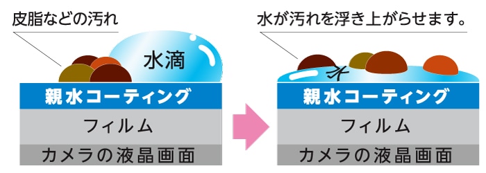 ■親水コーティングで曇りにくく、水に濡れても液晶画面が見やすい