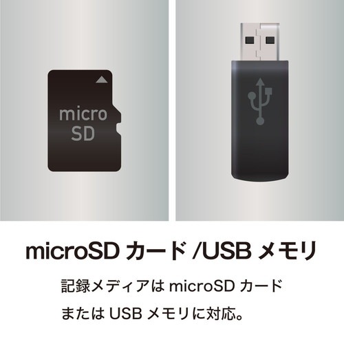 記録メディアはmicroSDカードまたはUSBメモリに対応。
