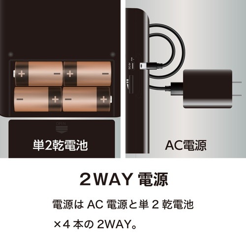 | 電源 ※2 | 単2形アルカリ乾電池×4本(別売) DC5V/1.5A 付属USBケーブル(Type-A to Type-C) |