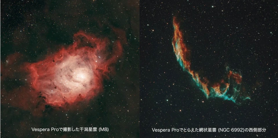 Vespera Proは、銀河、星雲、星団などのディープスカイオブジェクト (DSO)、太陽、月、日食の観測に対応しています。肉眼ではなかなか見えない神秘的な天体の姿が、超高感度 CMOSと独自の画像処理技術により見事に浮かび上がります。光害のある大都市からでも、鮮やかな天体を観測することが可能です。Vespera Proは高度な天体写真撮影に対応したVesperaシリーズ最高峰モデルですが、天文知識や天体望遠鏡の使用経験がなくても、誰もが簡単に最高レベルの天体観測、撮影ができるように設計されています。