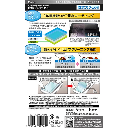 【即配】Insta360 AcePro2用 : KLP-I360ACEPRO2 防水カメラ用液晶プロテクター 【親水タイプ】 親水コーティングで曇りにくく見やすい! ケンコー KENKO【ネコポス便送料無料】