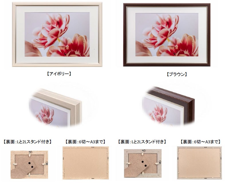 カラーはアイボリーとブラウンの2色。写真や作品のイメージ、お部屋の雰囲気に合わせてお選びいただけます。