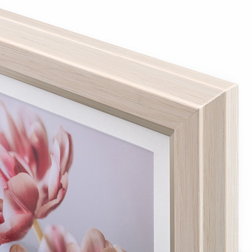 内面のシャンパンゴールドのラインがアクセントのウッド調のデザインは高級感があり作品を優雅に演出。 和室にも洋室にも馴染む優しい佇まいは、心休まるリラックス空間をはじめ、あらゆるインテリアにマッチします。