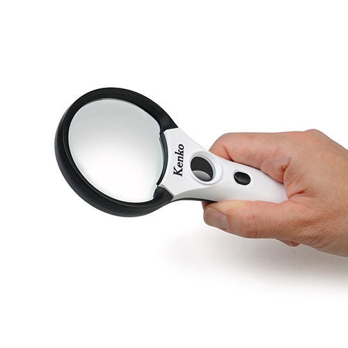 倍率2.5倍のLED付き拡大鏡。メインレンズは、光学ガラスを使用し明るくクリアな見えを実現。 メインレンズは2.5倍と低倍率なので、新聞読みに最適です。小玉は9倍と倍率が高いので宝石鑑定などに最適です。