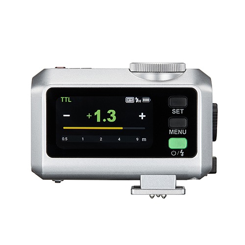 キヤノン、ニコン、ソニー、富士フイルム、OM/パナソニックの各社TTL自動調光に対応のオンカメラフラッシュです。 120gのコンパクトボディにワイヤレストリガー機能が搭載されています。
