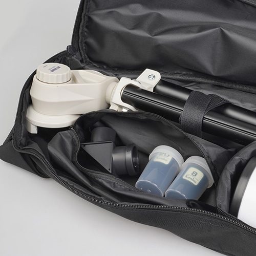 Sky Walker SW-60A天体望遠鏡セットが、ピッタリサイズで1つにまとめて運べるキャリーバックです。アイピースや天頂ミラーなどのアクサセリーを入れるポケットもついていて便利。